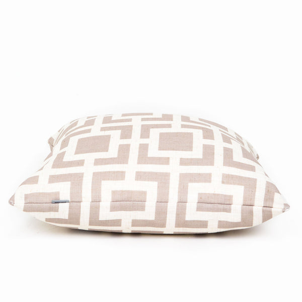 Harcourt is our interpretation of a traditional Grecian pattern and has been oversized for a contemporary look. This is a classic and timeless piece that stands well on its own and within a group of other geometric or small scale patterned cushions.